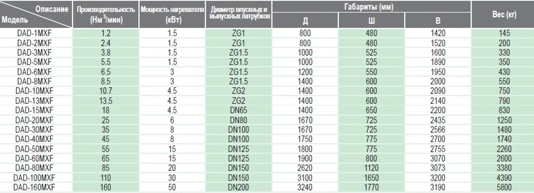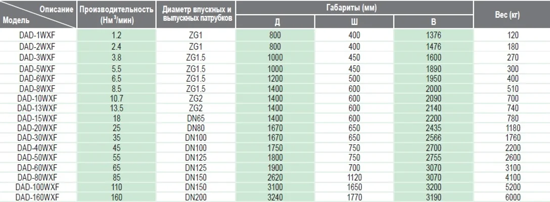 Точка росы под давлением: -20℃ ~ -40℃